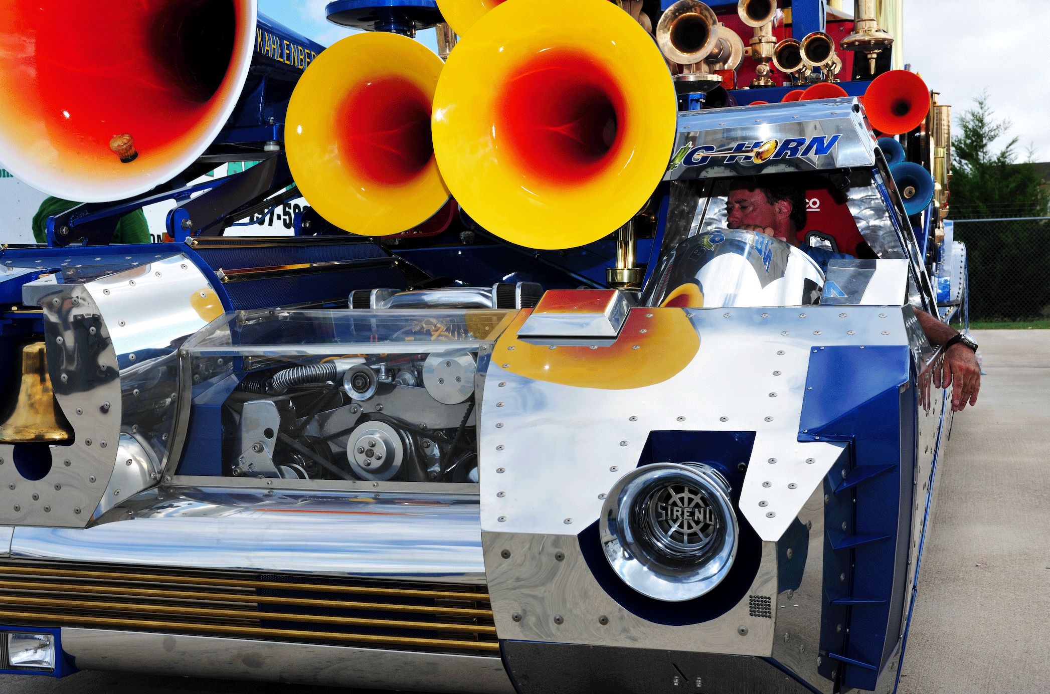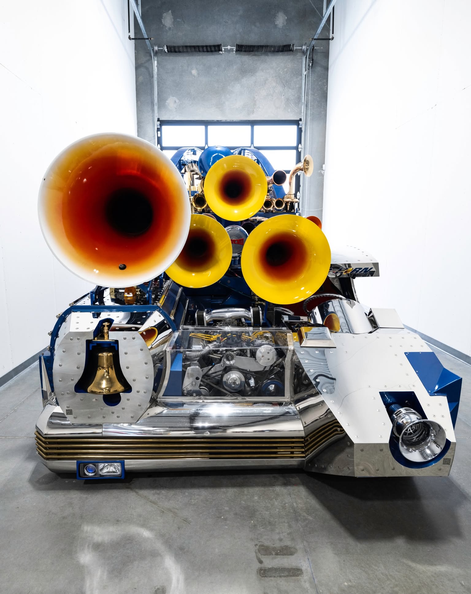 Nothing else in the world could possibly lay claim to an invention like Big Horn. Big Horn is 27 feet long, 19,000 pounds and covered in lights and every imaginable bell and whistle. And horn. If Willy Wonka and Dr. Seuss collaborated on a rolling tribute to the Industrial Revolution, it would probably look like this. From all the ironwork to the whistles and bells, Big Horn is a mechanical masterpiece: a ‘moving museum’ of horns and other noisemakers - massive and tiny - collected from battleships, cars, factories and trains from the 20th century.