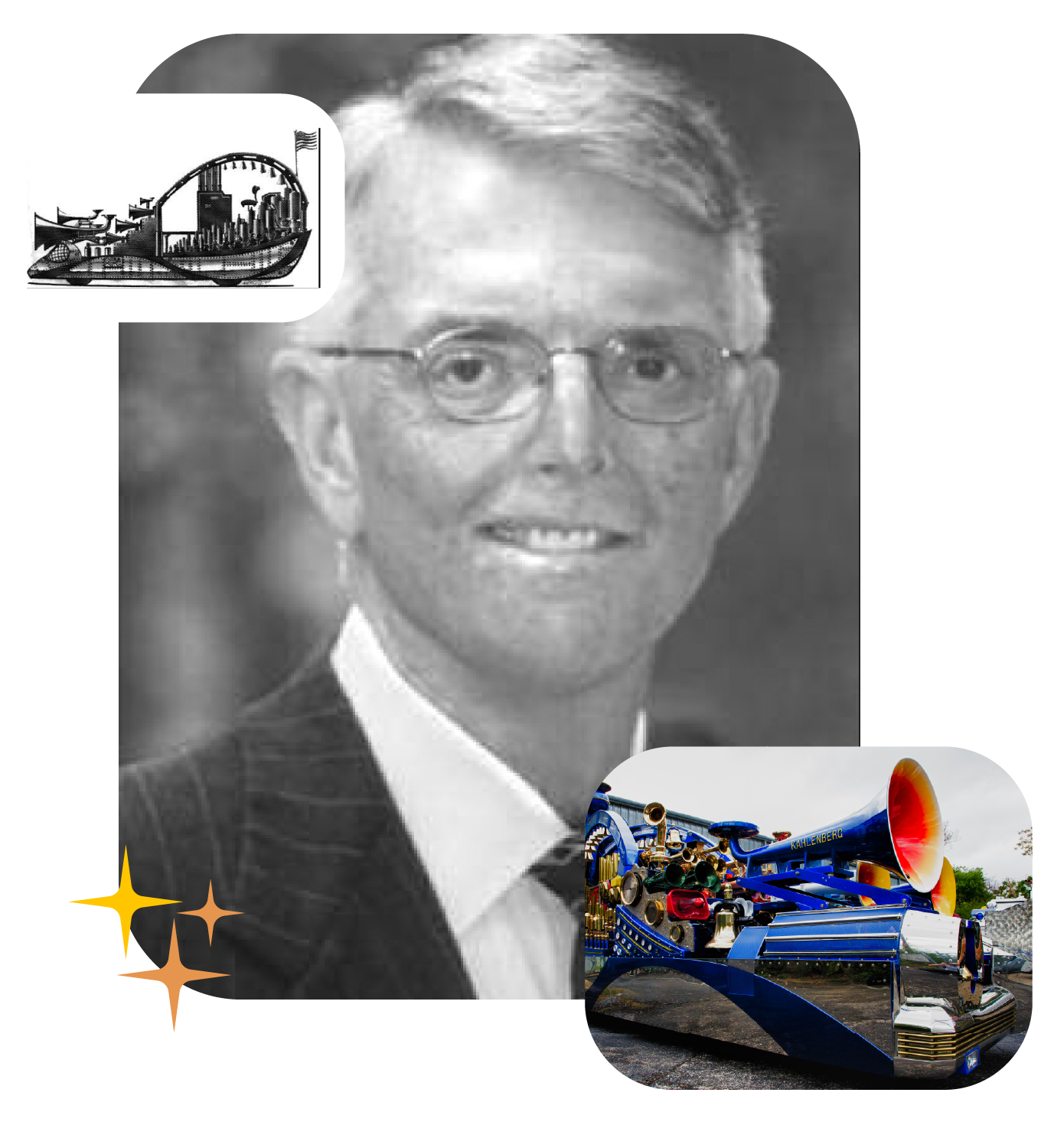 With his early beginnings of doing everything from working on a tugboat and racing stock cars to owning a pair of cotton gins, Bracey eventually received his PhD from Louisiana State University in 1969 in management, marketing, and finance. Prior to that, he earned an MBA from the sameinstitution in 1965 and a bachelor of business administration/marketing from Lamar University in 1964. Bracey eventually became the president of The Atlanta Consulting Group, and Hyler has also co-authored three top selling books and has spoken before many of the companies listed in the Fortune 500.Growing up in the industrial town of Port Arthur, Texas — the distinctive sounds of boat horns and train whistles were a constant but pleasant part of Hyler Bracey’s workday, and over time he even became an avid collector of horns and whistles. And as Hyler Bracey increased in passion for his work, that resulted in being a successful businessman and achieving many goals and accolades, his lifelong dream of creating Big Horn finally began to come into focus.With all the beautiful horns, bells and whistles rapidly disappearing from today’s society, Hyler Bracey visualized what it was he needed to build: the new Big Horn was to be a preservation vehicle, a rolling tribute to the sounds of the Industrial Revolution. By 1998, Hyler Bracey set out to create the magnificent Big Horn that you see today. All he needed now was a plan, and a “how”....and that’s where the University of Cincinnati came into play.